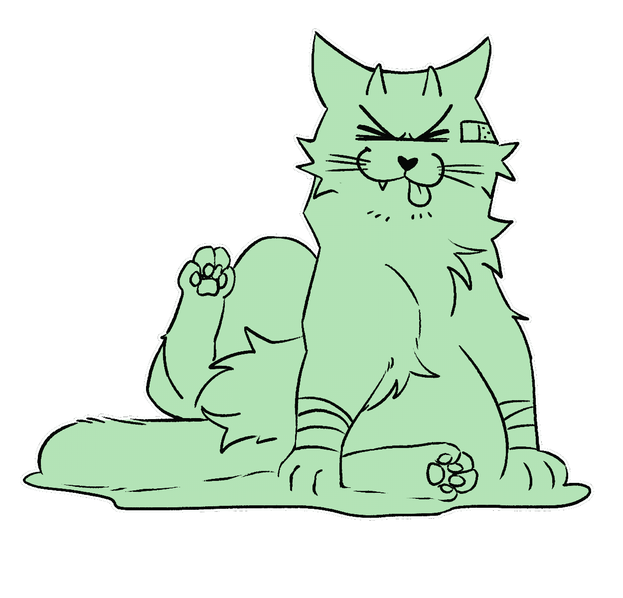 Silly cats...Now, the group is bound to the green feline demon and forced to feed it's curiosity.